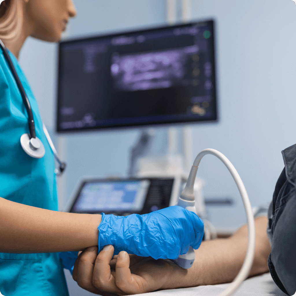 O Doppler arterial e venoso é um exame ultrassonográfico que avalia o fluxo sanguíneo nas artérias e veias dos braços e pernas. Ele é utilizado para diagnosticar condições como varizes, trombose venosa profunda, insuficiência arterial e outras doenças vasculares, monitorando a circulação sanguínea e detectando eventuais bloqueios.