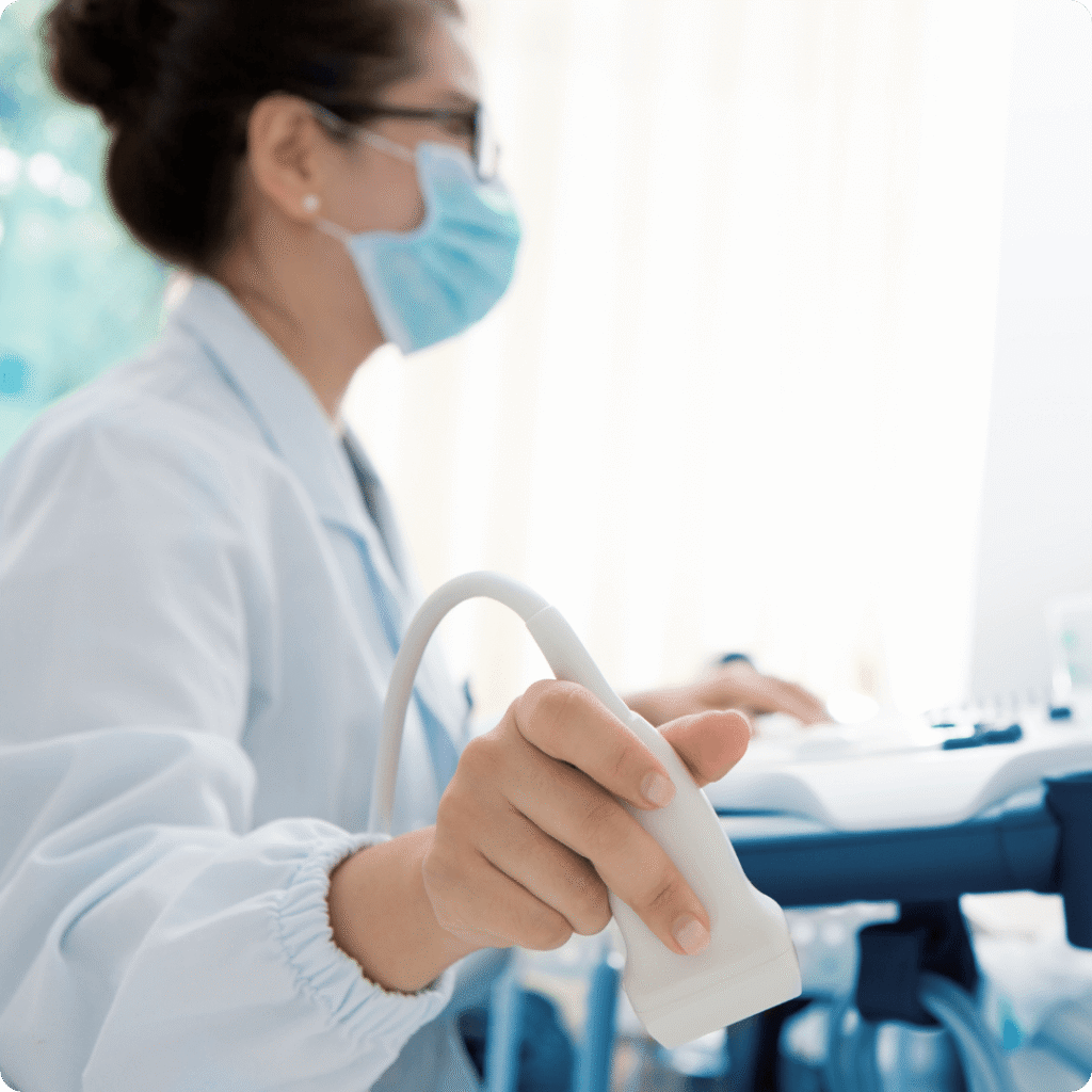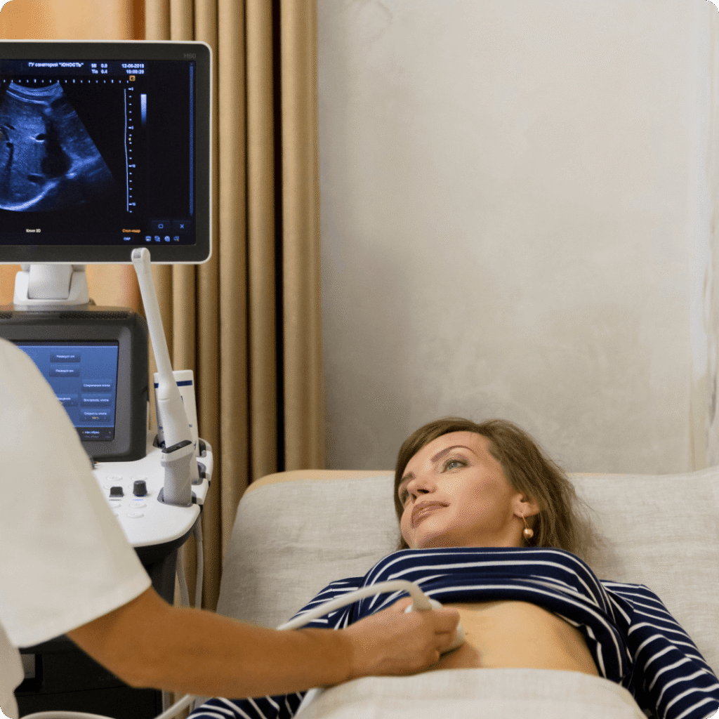 A ultrassonografia é um exame que utiliza ondas de ultrassom para gerar imagens em tempo real dos órgãos internos. Na ultrassonografia convencional, o objetivo é avaliar estruturas como fígado, rins, pâncreas e outros órgãos. Na obstétrica, é usada para monitorar o desenvolvimento fetal e a saúde materna. Quando associada ao Doppler, avalia também o fluxo sanguíneo, essencial em gestações consideradas de alto risco, para avaliar o binômio mãe-feto.
