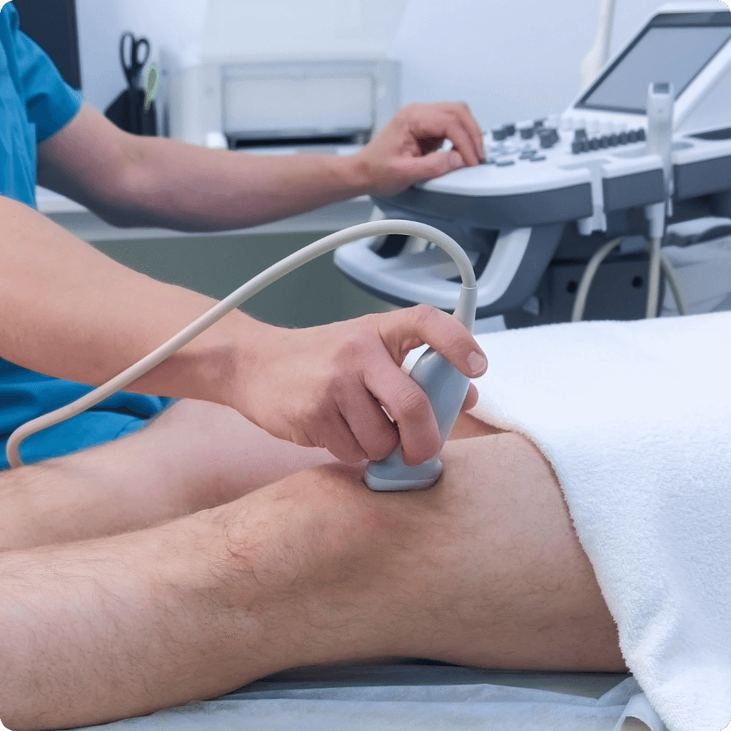 A ultrassonografia músculo-esquelética utiliza ondas de ultrassom para avaliar lesões e condições de músculos, tendões, ligamentos, articulações e tecidos moles. É muito utilizada em diagnósticos de lesões esportivas, inflamações e roturas de tendões, proporcionando uma análise detalhada em tempo real, sem o uso de radiação ionizante.